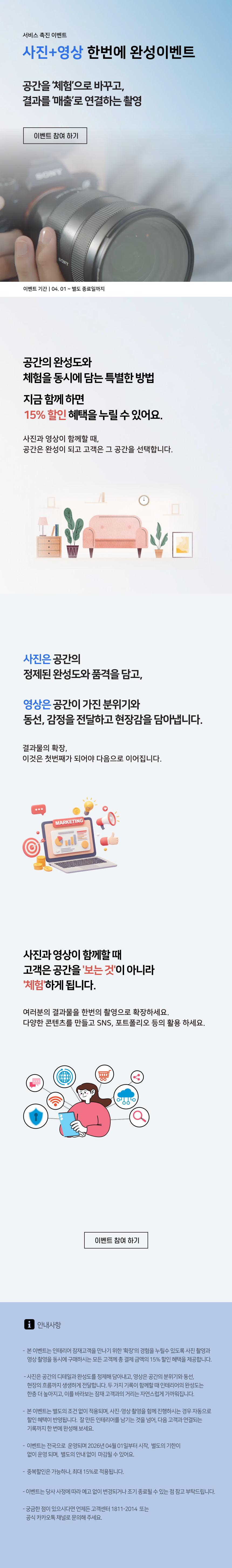 사진+영상 한번에 완성 15%할인 이벤트 2026.04.01 ~ 2026.12.31